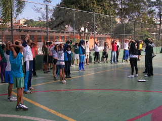 Na primeira parte da gincana ocorreu a corrida das estações, que consistia na disputa de seis modalidades de esporte e as equipes que juntassem o maior número de pulseiras (pontos) se classificaria para a segunda fase para disputar a grande final. As 3 equipes classificadas para a 2ª fase foram as equipes do Tae Kwon Do (Mestre Carlos Mariano e Dom Bosco) e a equipe AEC Kauê-04. “Achei muito legal participar e só lamento não termos chegado a final, pois perdemos na prova de arremesso de disco”, afirmou Francisco Carlos de Souza, capitão da equipe AEC Kauê-04. A gincana não era só para os jovens, prova disso foi a participação de Dona Francisca, mãe de Francisco Carlos, que competiu até na corrida de saco. “Achei ótimo participar da gincana”, disse ela que tem 61 anos de idade.